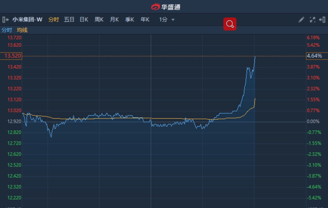 智通财经APP获悉,小米(01810)发布年度旗舰手机刺激行业活力,午后拉涨近5%。截至15时10分,涨4.8%,报价13.54港元,成交额37.82亿。