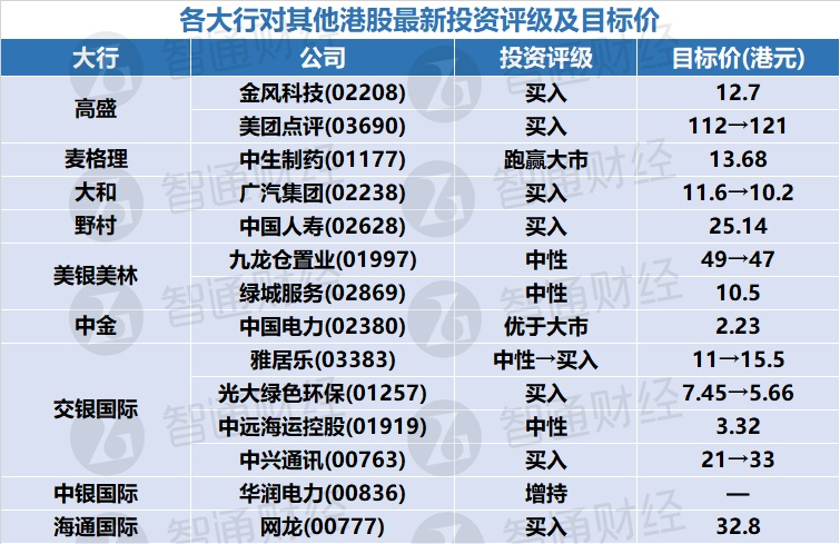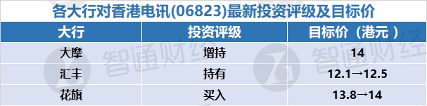 五、各大行对香港电讯(06823)最新投资评级及目标价