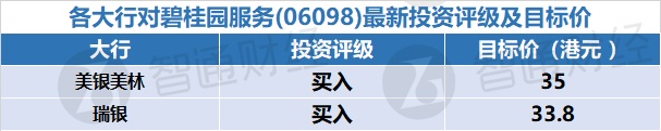 七、各大行对碧桂园服务(06098)最新投资评级及目标价