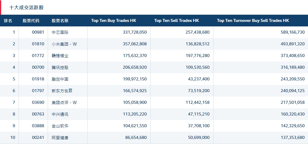 此外,新东方在线(01797)、金山软件(03888)、美团点评-W(03690)分别获净买入9305万、6691万、5861万港元。此外,赣锋锂业(01772)、港交所(00388)分别遭净卖出2214万、2.34亿港元。