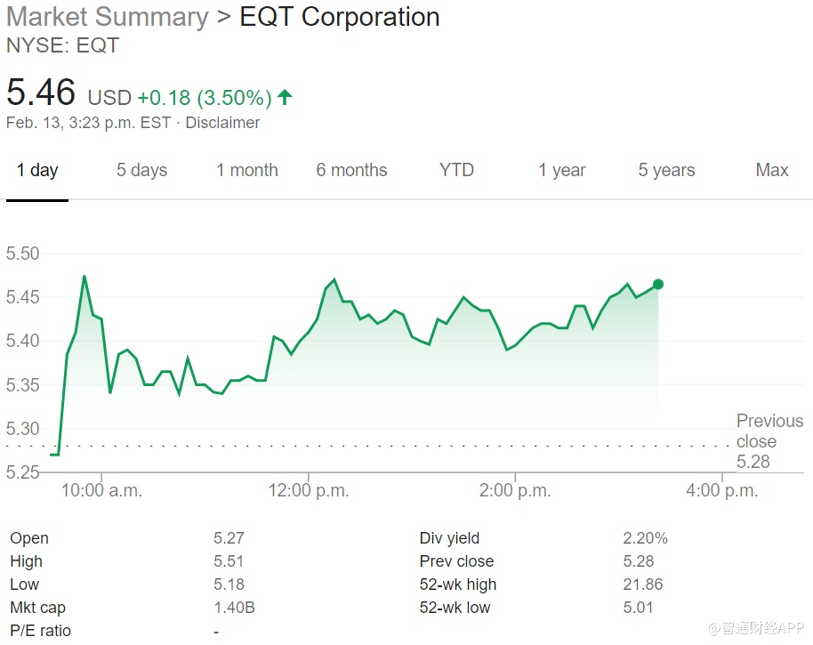 EQT Corporation是天然气的主要供应商,在美国宾夕法尼亚州,西弗吉尼亚州和俄亥俄州超过100万英亩的土地上拥有及租赁勘探和开采权。该公司持有的已探明储量超过19.1万亿立方英尺。EQT在2018年中期将其中游业务(管道和相关运输资产)拆分为Equitrans,使母公司可以专注于钻探和开采。