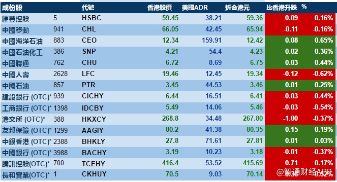 智通财经APP获悉,周四美股反覆偏软,港股ADR指数全日微跌,按比例计算,收报27693点,跌37点。