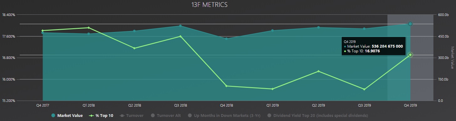截至2019年12月31日,摩根大通前十大持仓标的占总市值的16.91%。