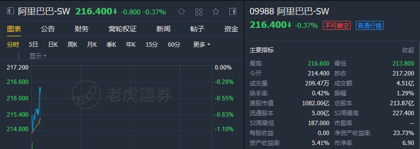 该行表示,维持对香港上市的阿里巴巴“买入”评级,列于“确信买入”名单,目标价277港元。