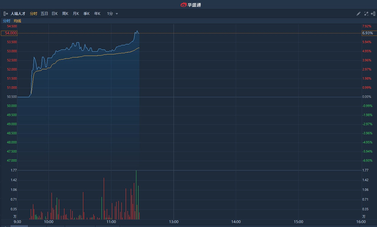 智通财经APP获悉,西南证券发布研报称,首次覆盖人瑞人才(06919),给予“买入”评级,目标价58港元。认为公司可充分反映灵活用工行业红利,业绩成长更高速且确定性更强。截至发稿,人瑞人才涨6.93%,报54港元,成交额1499万港元,股价刷新历史新高。