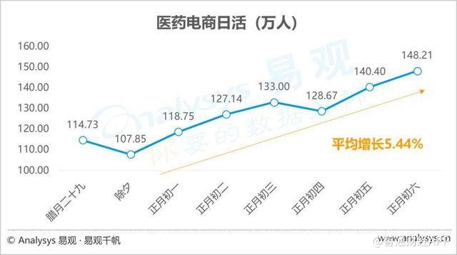 据易观千帆统计,由于封城、包括口罩、酒精等线下医疗用品基本处于断货状态,医药电商活跃人数也在不断增加,最高日活量达148.21万人。