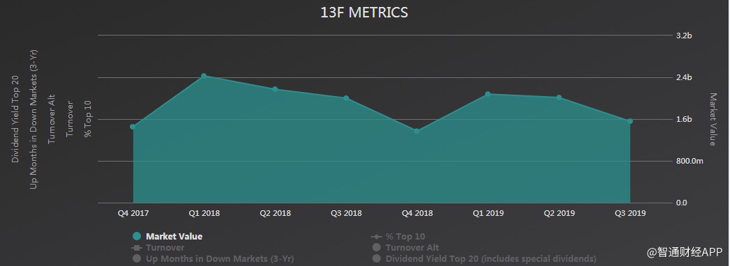 截至2019年12月31日,凯雷前十大持仓标的占总市值的 99.75 %,持仓时长9.7季度。