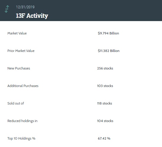 截至2019年12月31日,桥水前十大持仓标的占总市值的67.42%。