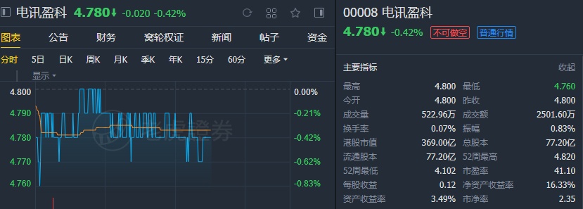 智通财经APP获悉,瑞信发布报告称,将电讯盈科(00008)2020-2021年每股盈利预测下调34%,主要是考虑到摊销开支对2019年盈利的影响。因此,下调对其IT解决方案业务的估值,也将其目标价由5.6港元降至5.5港元,维持“跑赢大市”评级。