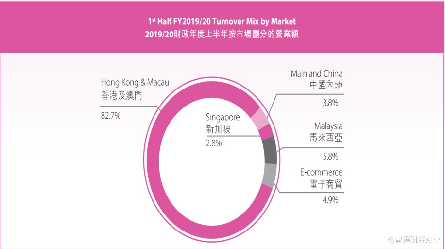 2019/20财年上半年,莎莎电子商贸业务的营业额同比下跌8.2%至1.7亿元。其中中国内地顾客占收益超过90%,来自第三方平台收入占电子商贸业务销售额67%。公司自建的网站及手机应用程序出现34.6%的销售跌幅。