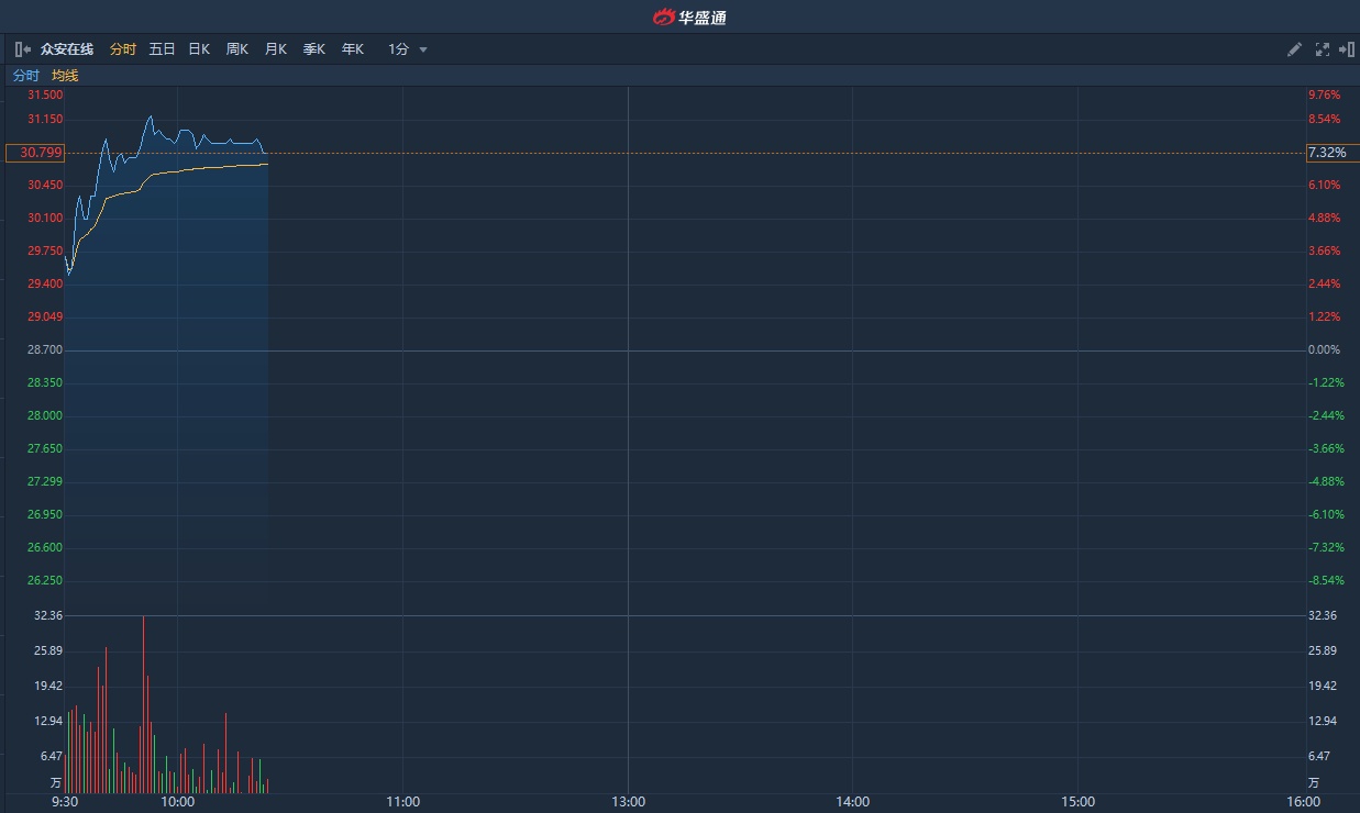 智通财经APP获悉,众安在线(06060)发布公告,公司于2020年1月所获得的原保险保费收入总额约为人民币14.85亿元,同比增长62.29%。截至发稿,众安在线涨7.32%,报30.8港元,成交额1.34亿港元。
