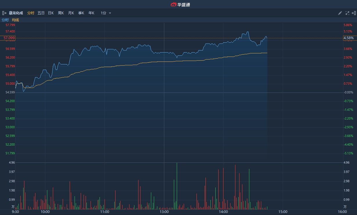 智通财经APP获悉,根据港交所最新权益披露资料显示,2020年2月10日,康龙化成(03759)获JP Morgan Chase & Co.增持52.11万股,每股均价56.0178 港元,总价约2919万港元。该股今日随时走强,盘中高见57.4港元,股价创上市以来新高。截至发稿,涨4.58%,报57.1港元,成交额9189.03万港元。