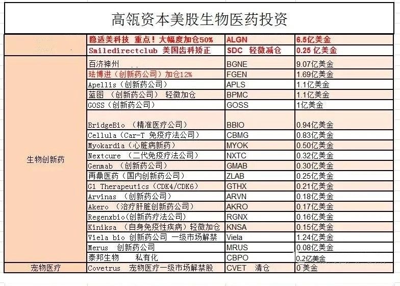 而高瓴最新进的12家企业中,有8家都是生物制药、生物科技公司,比如说增持近80万股的牙科医疗设备公司Align科技。