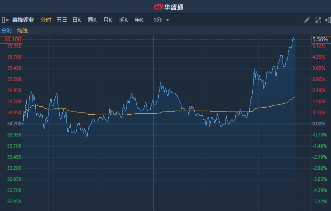 截至15时41分,涨5.56%,报价36.1港元,成交额3.115亿。