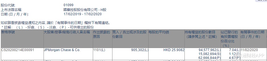 智通财经APP获悉,联交所最新资料显示,2月11日,国药控股(01099)获摩根大通增持约90.53万股,每股作价25.9082港元,总金额约为2345.47万港元。增持后最新持股数目约为9458万股,最新持股比例为7.04%。