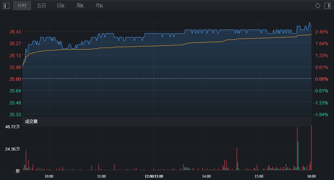 截至今日收盘,国药控股涨2.71%,报26.5港元。