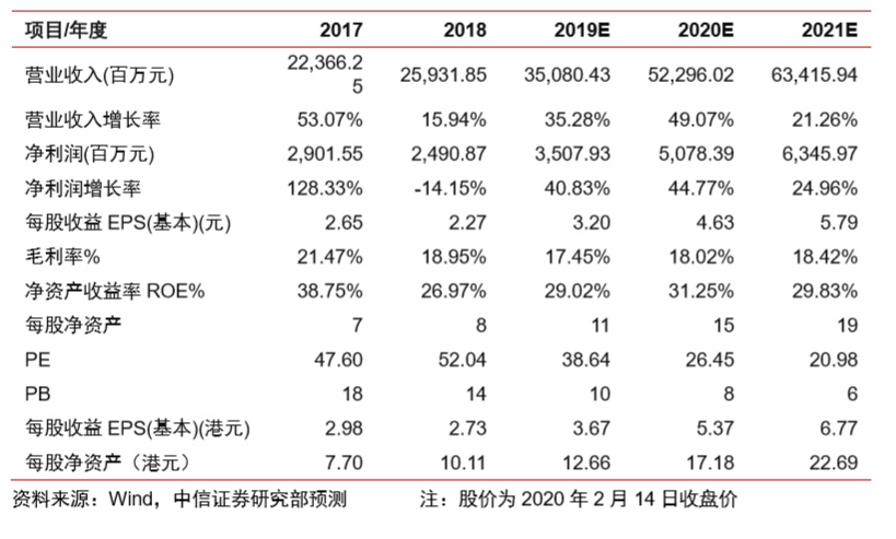投资建议:公司为大陆光学龙头,有望持续受益手机光学创新及汽车ADAS系统加速渗透。我们维持公司2019/2020/2021年EPS预测3.2/4.6/5.8元(对应3.67/5.37/6.77港元),考虑公司龙头地位及行业可持续,给予2020年35倍PE,对应目标价187.95港元,维持“买入”评级。