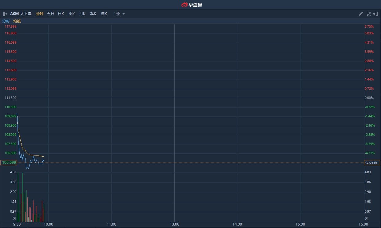 港股异动 | 将于下周二发布业绩 ASM太平洋(00522)随市下跌逾5%