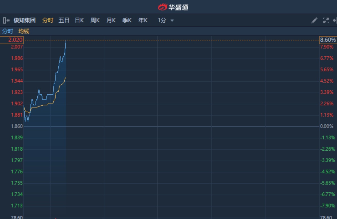 智通财经APP获悉,5G规模建设周期将至,俊知集团(01300)早盘延续涨势,截至10时16分,涨8.06%,报价2.01港元,成交额1107万。值得注意的是,该股盘中高见2.02港元,创逾四年半新高。