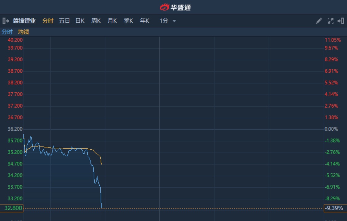 智通财经APP获悉,赣锋锂业(01772)遭国企结构调整基金连续三日减持。该股盘中直线下挫逾9%,截至11时00分,跌9.39%,报价32.8港元,成交额2.246亿。