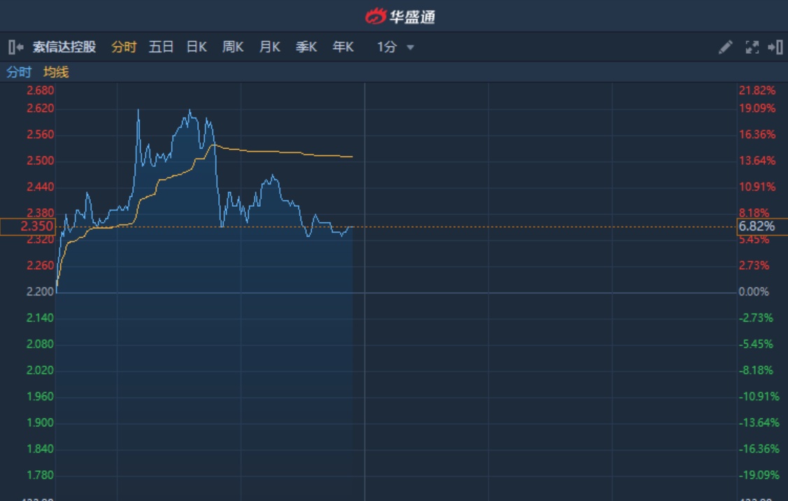 智通财经APP获悉,次新股索信达控股(03680)盘中一度涨超20%,高见2.65港元较发行价1.5港元高逾76.6%,创上市新高,截至11时53分,涨6.82%,报价2.35港元,成交额9835万。