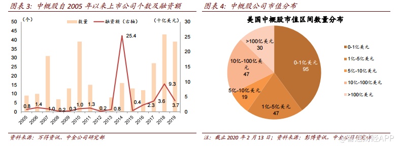 问题一:中概股市场概况。以美国为主上市地的中概股234支,总市值约1.2万亿美元(截止2020年2月13日)。其中大部分来自互联网及科技(含金融科技)、消费、医药等新经济领域,市值及流动性分布两极分化,超过100亿美元的30家,日均交易量超过5000万美元的22家。