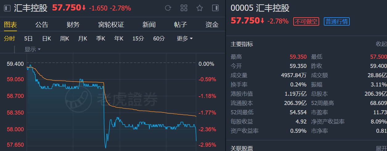 该行表示,维持对汇控”减持“投资评级及目标价52港元。