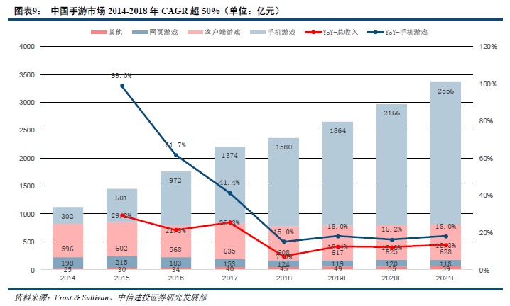 中国市场——手游市场2014-2018年CAGR超50%