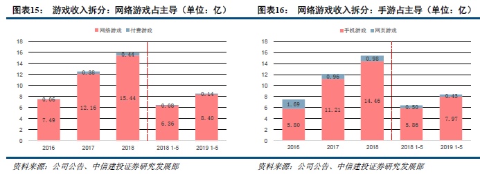 信息服务业务方面,公司旗下易玩的TapTap是中国领先的游戏社区平台之一。TapTap其向游戏开发商、游戏发行商和广告代理提供在线推广服务,TapTap率先采用免费分发模式。截至2019年5月31日止5个月,公司的游戏业务实现营收8.56亿元,同比增长32.4%,贡献总营收的82.9%;信息服务业务实现营收1.77亿元,同比增长57.9%,贡献总营收的17.1%。信息服务业务贡献的收入自2017年至2018年大幅增加,对应的营收从0.81亿元增长到2.95亿元,主要是因为TapTap的用户群扩大及对TapTap用户群货币化力度的加大。