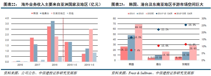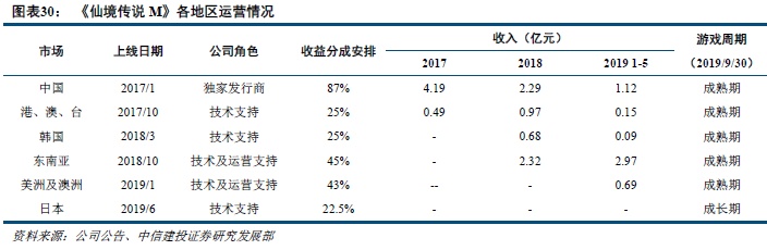 截至2019Q3,公司共向全球100多个国家及地区提供游戏产品。目前在运营的54款游戏中有37款游戏于海外发行,主要集中于亚洲,包括中国香港、澳门、台湾地区,及日本、韩国、东南亚,在北美洲、南美洲及澳大利亚也有运营,公司拥有145人的海外发行团队,在储备的11款新网络游戏中,预期将有4款网络游戏于海外运营。