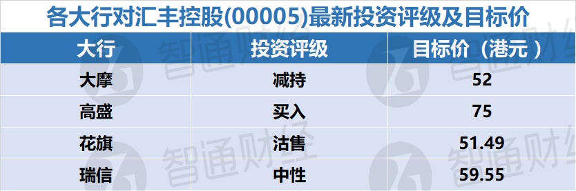 二、各大行对汇丰控股(00005)最新投资评级及目标价