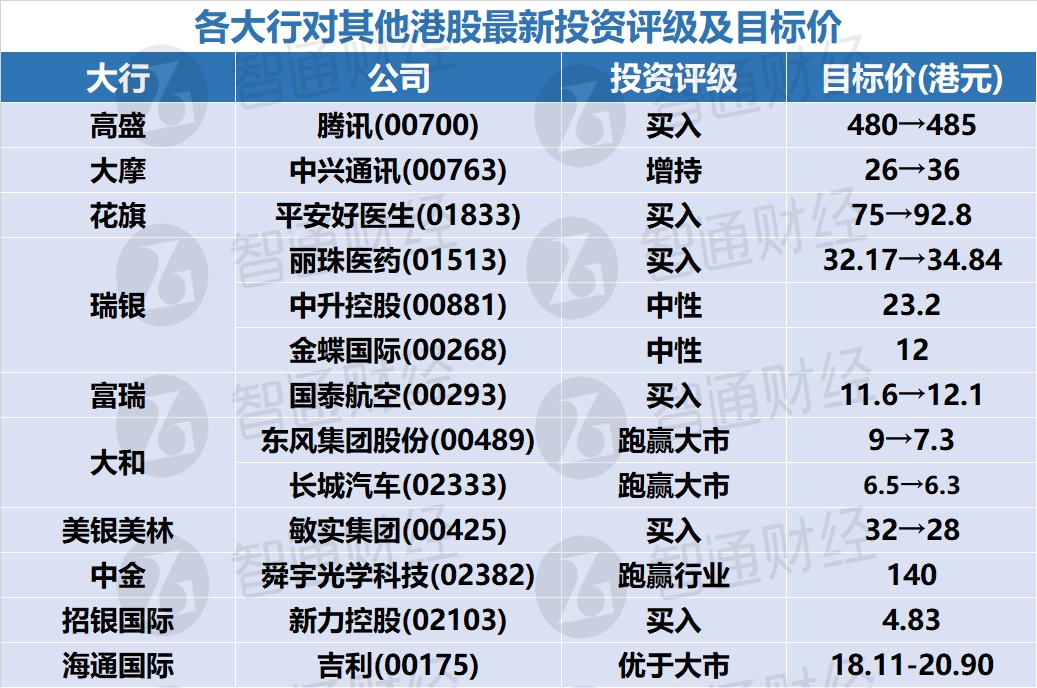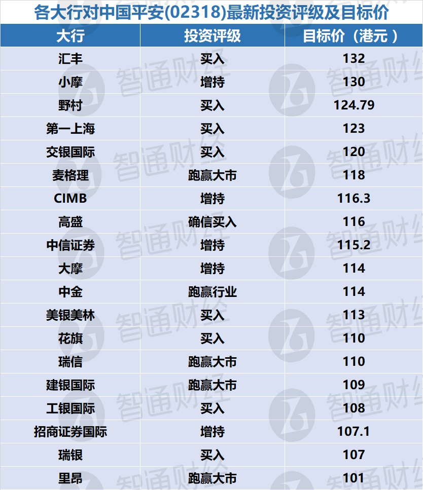 一、各大行对中国平安(02318)最新投资评级及目标价