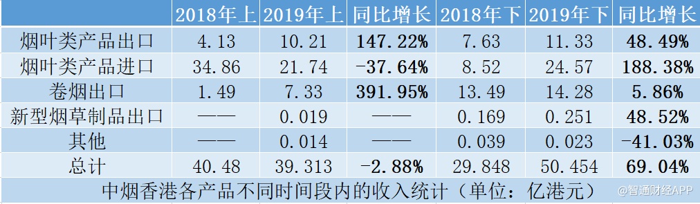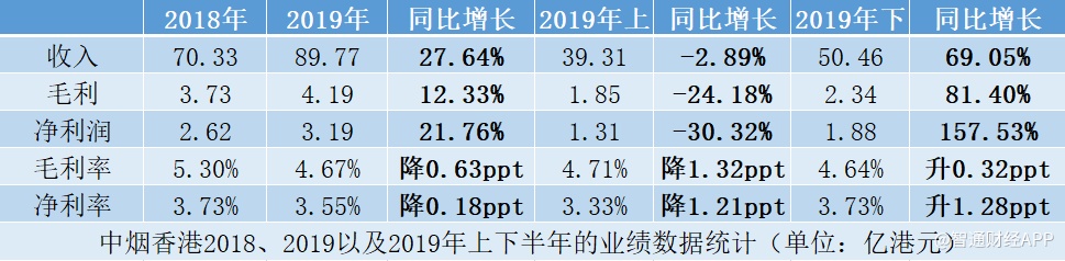 事实上,中烟香港上半年的业绩是下滑的,对全年业绩有所拖累。若将年度业绩拆分,中烟香港2019年下半年的业绩可谓亮眼。