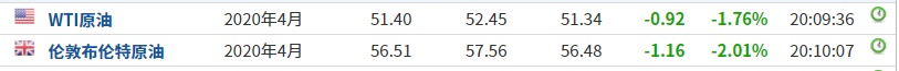 截止发稿,WTI原油跌1.76%,报51.40美元/桶。布伦特原油跌2.01%,报56.51美元/桶。