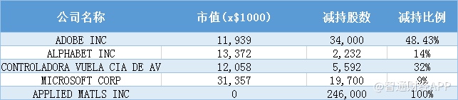 具体来看,老虎基金Q4减持的4只股,分别为Adobe(ADBE.US)、沃拉里斯航空(VLRS.US)、微软(MSFT.US)以及谷歌(GOOG.US) 。同时,老虎基金清仓了应用材料(AMAT.US)。