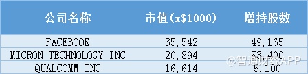 与此同时,老虎基金增持3只股,均为科技股,包括高通(QCOM.US)、脸书(FB.US)和美光科技(MU.US)。