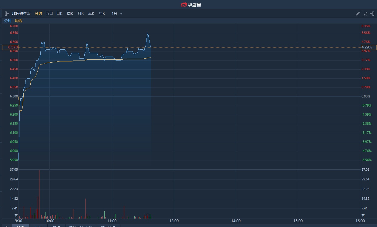 智通财经APP获悉,港股通和恒生综指的年度检讨名单将正式出炉,市场憧憬JS环球生活(01691)获纳入名单。该股近期持续获资金追捧,本月至今累计涨幅近三成。截至发稿,涨4.29%,报6.57港元,成交额1368.54万港元,股价刷新上市新高。