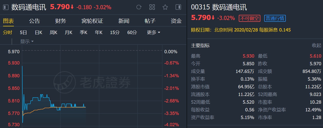 该行表示,下调数码通目标价,由6.62港元降至5.88港元,予“中性”评级,并下调对2020至2022财年的盈利预测2.2%至4.6%,以反映经营成本上升等因素。