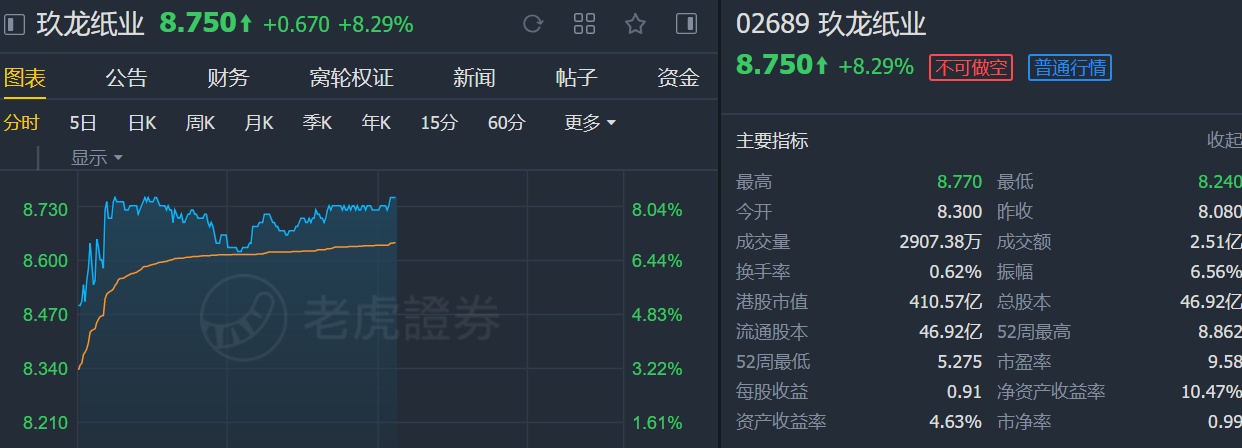 智通财经APP获悉,瑞信发表研究报告,玖龙纸业(02689)公布自2月19日起将每吨纸价上调100元人民币(约3%),此次提价将涵盖所有类型的纸产品。该行相信,目前减弱的需求在未来一至两个月有所改善,相信纸价仍会继续上升,并会令市场感到意外。