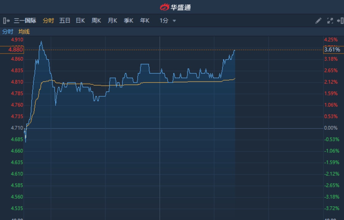 智通财经APP获悉,三一国际(00631)获招商证券看高至5.47港元,维持“买入”评级。截至14时22分,涨3.61%,报价4.88港元,成交额3187万。值得注意的是,该股盘中高见4.9港元,创逾8年新高。