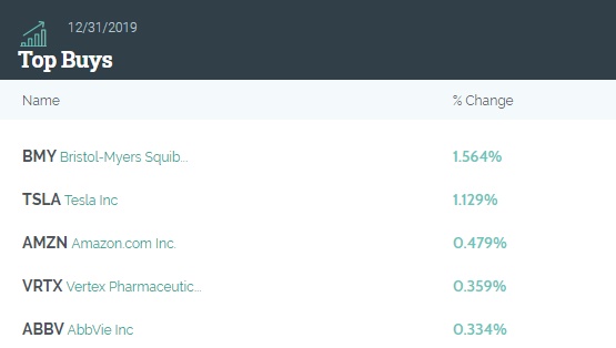从持仓比例变化来看,文艺复兴前五大买入股分别是:施贵宝,特斯拉,亚马逊(AMZN.US),福泰制药和艾伯维(ABBV.US)。