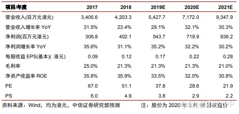 投资建议:看好公司稳健发展和毛利率弹性,维持“买入”投资评级。公司既能享受稳定交付面积带来公司管理规模提升,又开始证明外拓的弹性。更重要的是,公司品牌形象大为改善。我们维持公司 2019/2020/2021 年 0.17/0.22/0.28 港元的 EPS 预测,我们给予公司 2021 年 30 倍的 PE,对应 8.54 港元/股的目标价,公司当前股价 6.32 港元/股,维持公司“买入”投资评级。