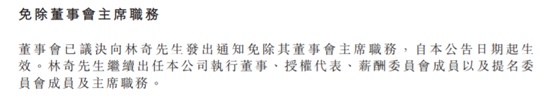 2月18日晚间,天喔国际发布公告称,作为天喔国际采取额外补救措施的一部分,董事会已向林奇发出通知免除其董事会主席职务,自2020年2月13日起生效。不过,林奇将继续出任该公司执行董事、法定代表、薪酬委员会成员以及提名委员会成员及主席等职务。