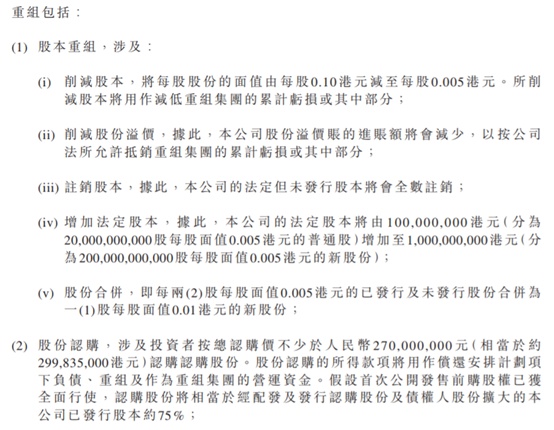 此外,天喔国际、联席临时清盘人与一名投资者就建议重组天喔国际签订了无约束力条款书,重组涉及天喔国际及其海外附属公司、上海附属公司、武汉和湖州的业务。投资者将以2.7亿元的认购价认购股份,天喔国际面临重组。