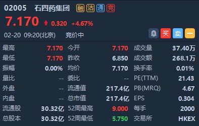 智通财经APP获悉,石四药集团(02005)发布公告,集团产品阿比多尔和利巴韦林被中国国家卫生健康委员会于2020年2月18日列入新型冠状病毒肺炎诊疗方案(试行第六版)。于该公告刊发之时,阿比多尔胶囊已准入27个省市防控疫情产品储备目录或防控药品绿色通道。受消息影响,该股高开4.67%,报7.17港元,成交额268.16万港元。