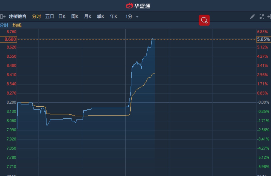 智通财经APP获悉,建桥教育(01525)获麦格理首予目标价10港元,评级“跑赢大市”,截至13时38分,涨5.85%,报价8.68港元,成交额1316万。值得注意的是,该股午后放量急升逾5%,高见8.69港元,刷新上市新高。
