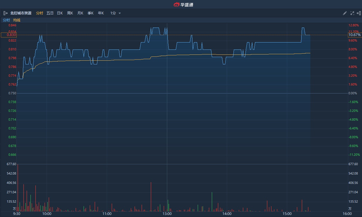 智通财经APP获悉,次新股北控城市资源(03718)于本月10日发布盈喜,预期年度纯利同比增超50%。此后股价持续攀升,今日盘中高见0.84港元,刷新上市新高。截至发稿,涨10.67%,报0.83港元,成交额7255.75万港元。