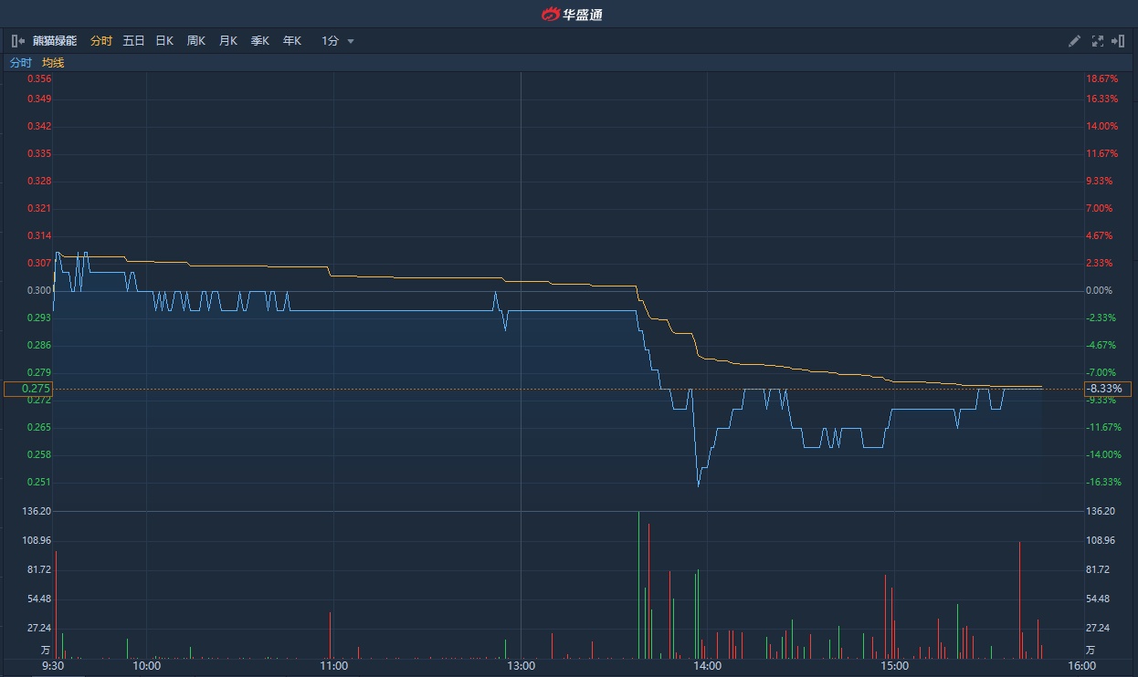 智通财经APP获悉,熊猫绿能(00686)近日公告称,2020年2月18日,公司以特别授权按每股0.25港元配发及发行约71.769亿股新股份,占现有已发行股份47.06%,较上一个营业日的每股收市价0.29港元折让13.79%。该股今日盘中一度跌超16%,截至发稿,跌8.33%,报0.275港元,成交额561.14万港元。