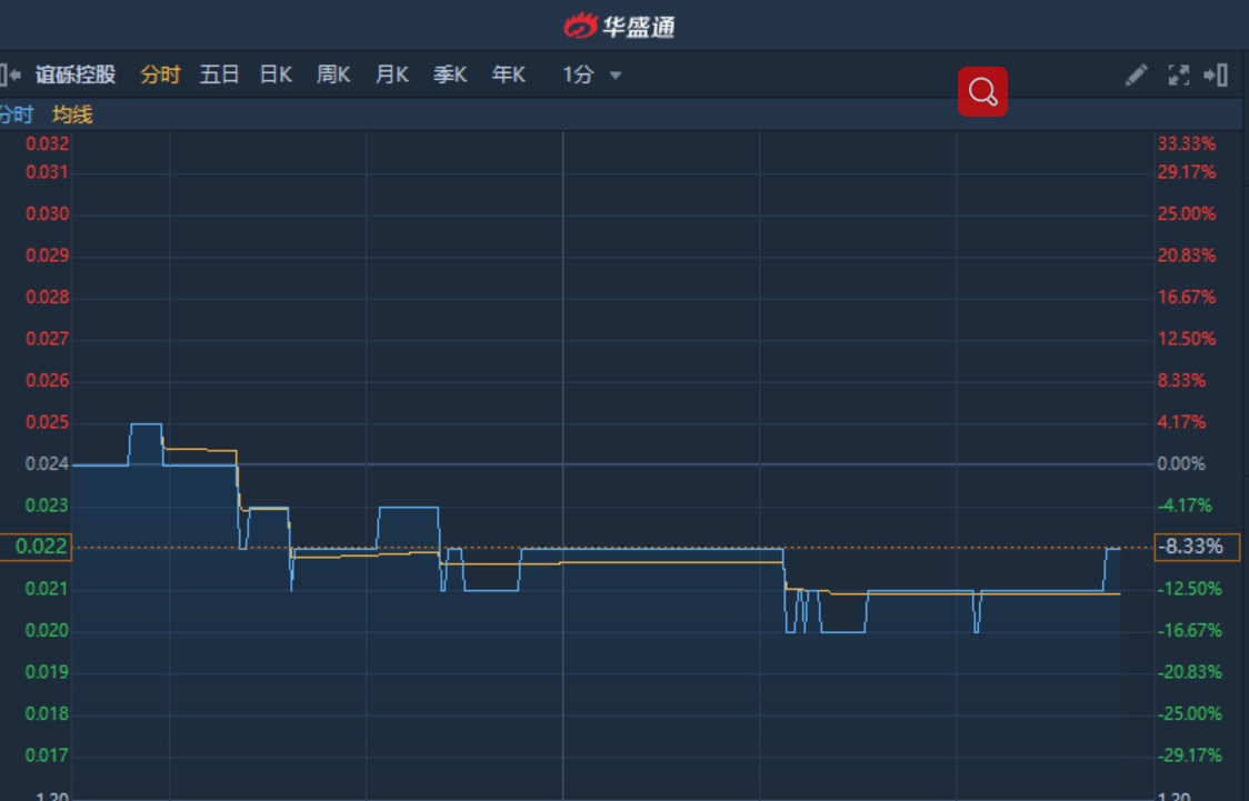智通财经APP获悉,细价股谊砾控股(00076)盘中一度跌超16%,低见0.02港元,触及历史新低,截至15时45分,跌8.33%,报价0.022港元,成交额917万。值得注意的是,该股年初至今累计跌幅超60%。