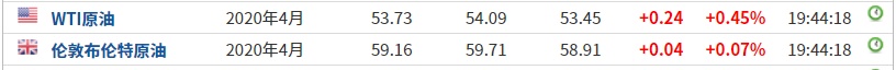 截止发稿,WTI原油涨0.45%,报53.73美元/桶。布伦特原油涨0.07%,报59.16美元/桶。